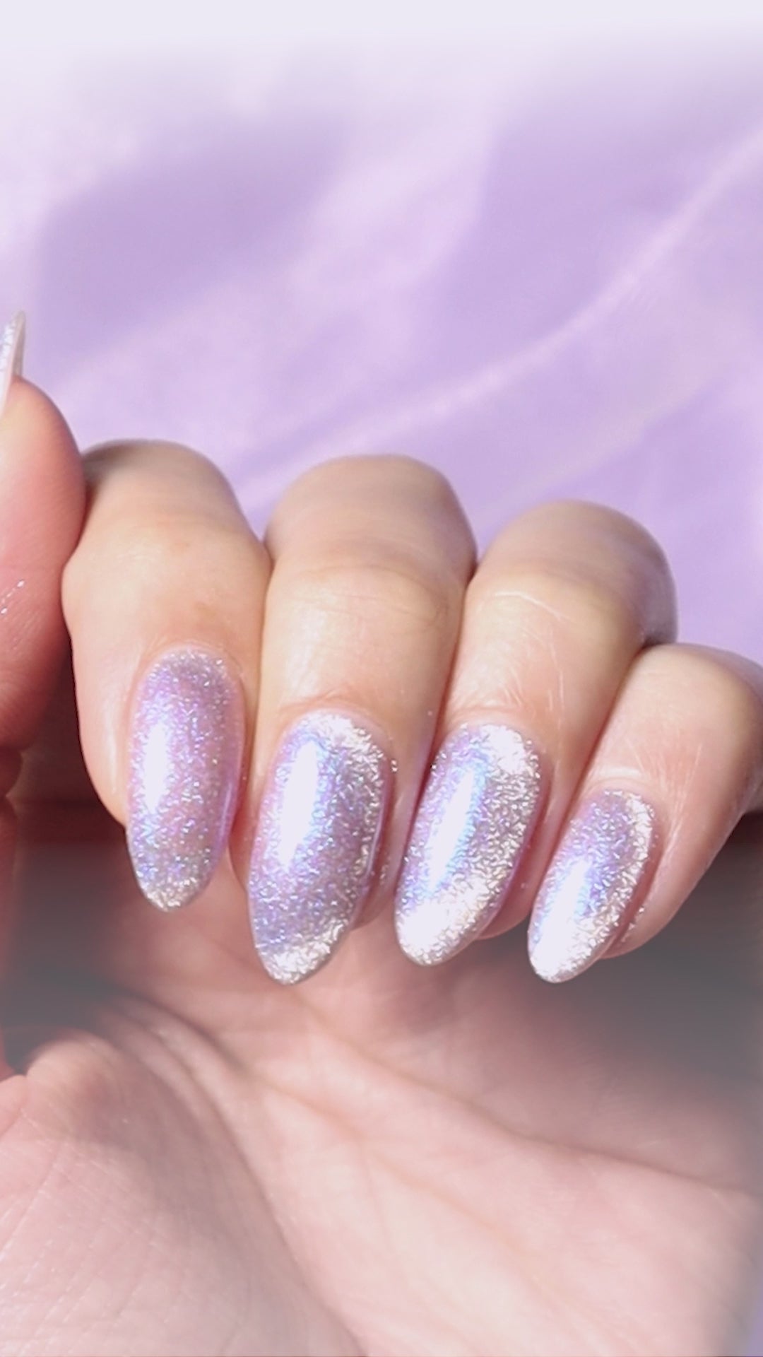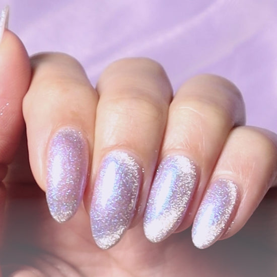 The shade “Lavender Magnet / Stardust Blink” sparkles like the gentle twinkle of stars in the night sky. Its soft transparency and delicate lavender hue bring a romantic glow to your fingertips. ✨💜